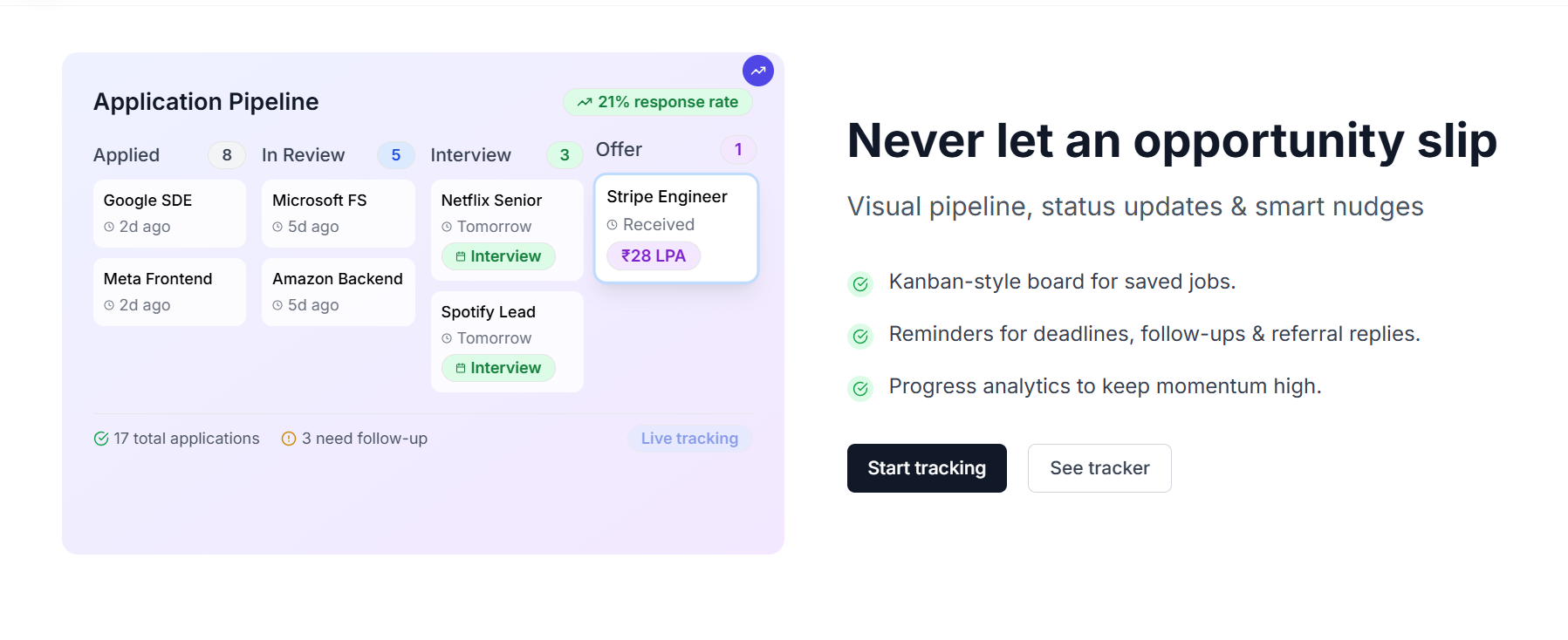 - Track applications for niche Ops roles with the Job Tracker, the same way companies track supply chains.
